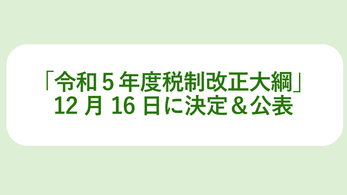【速報】「令和5年度税制改正大綱」12月16日に決定&公表